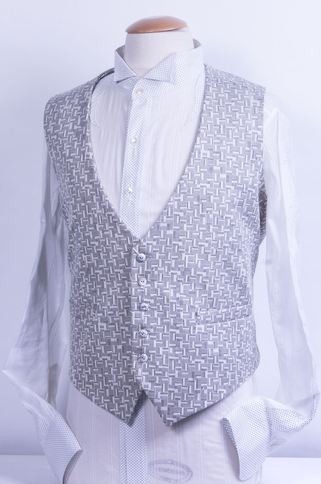 Le Gilet "Art Déco Gris" est réalisé en tissu Jaquard de très belle qualité, un mélange de coton et synthétique